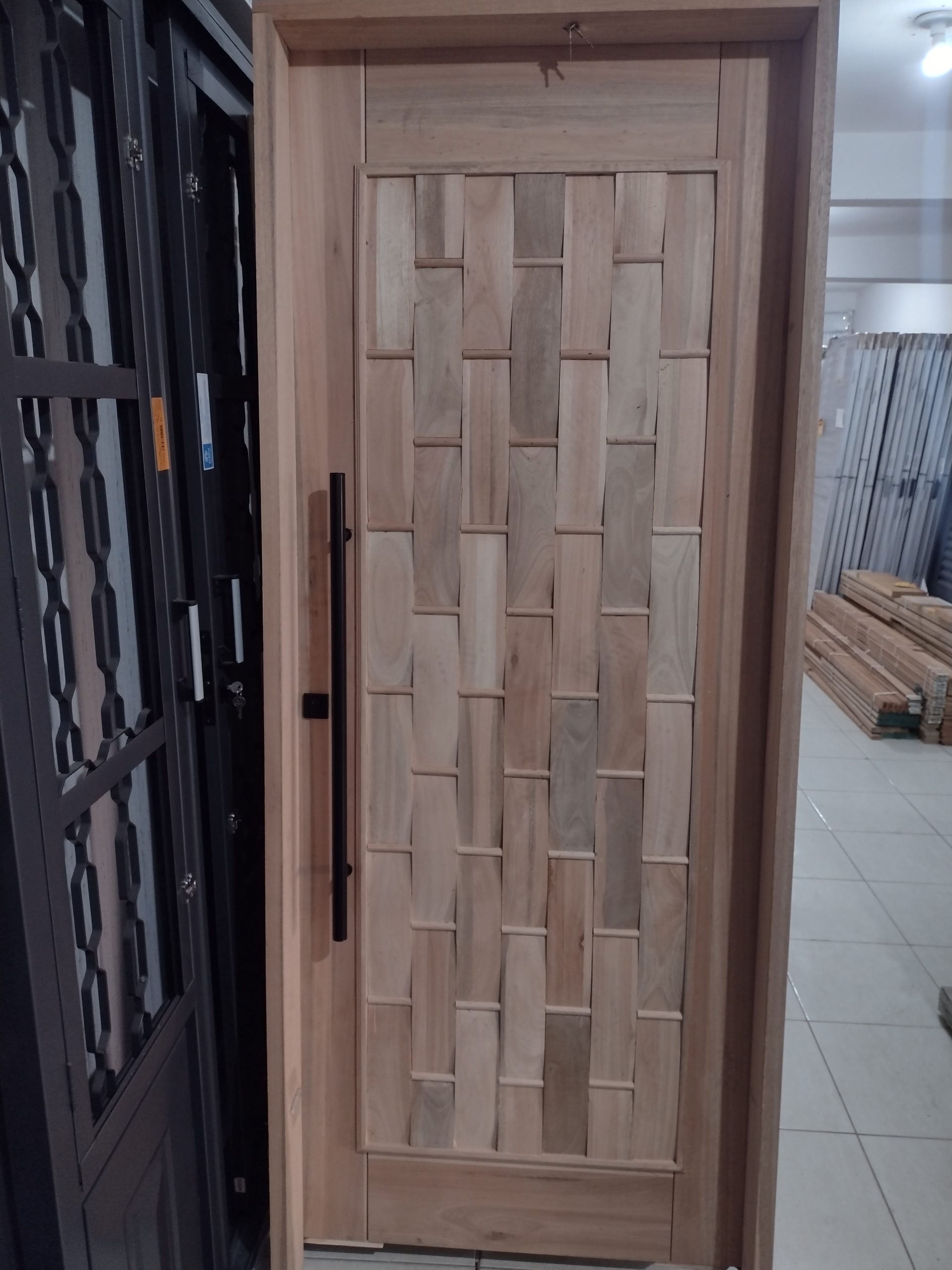 Porta maciça batente 14cm eucalipto couro 2,10×82 puxador e fechadura rolete